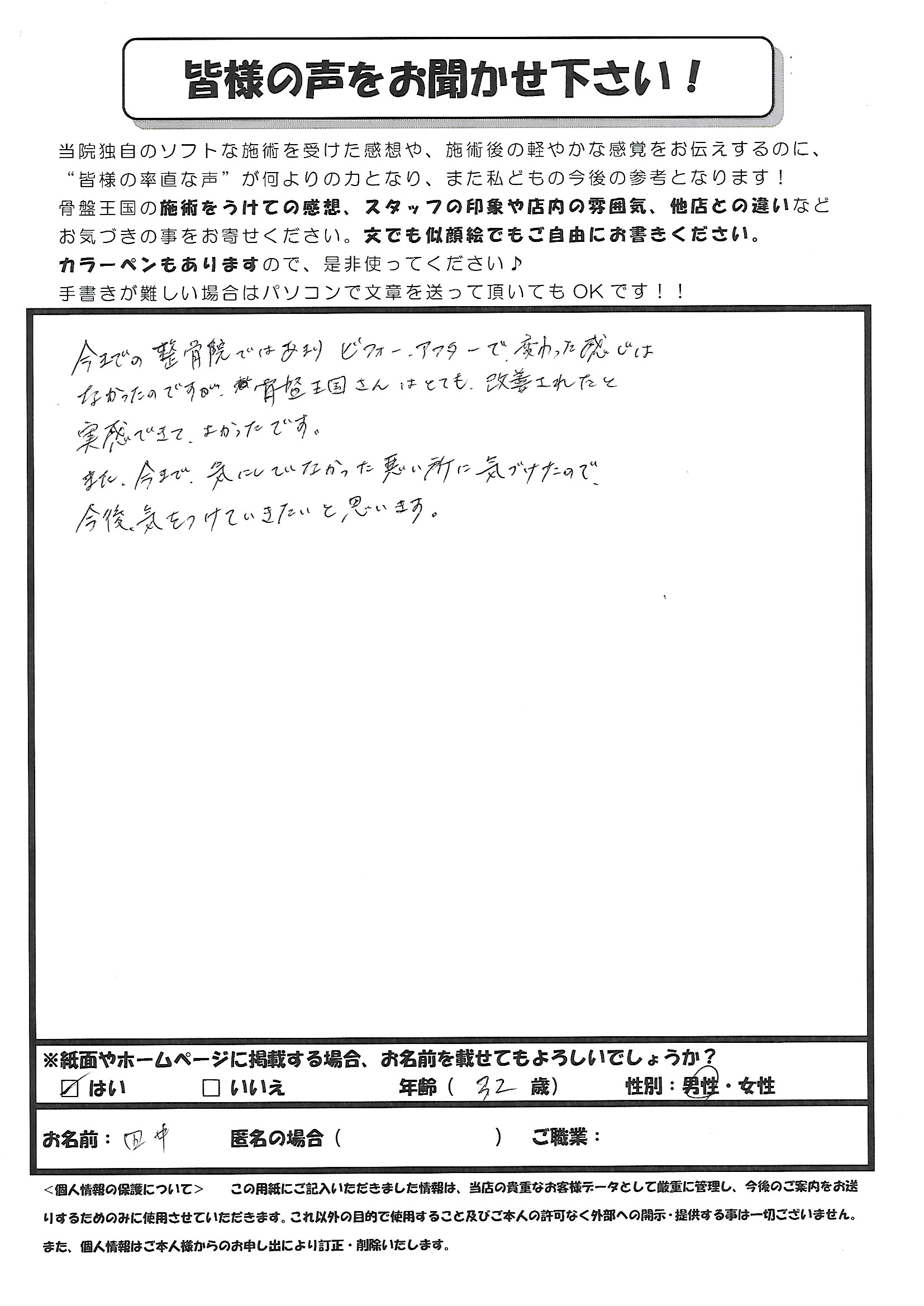 一度の施術で体が軽くなりました。